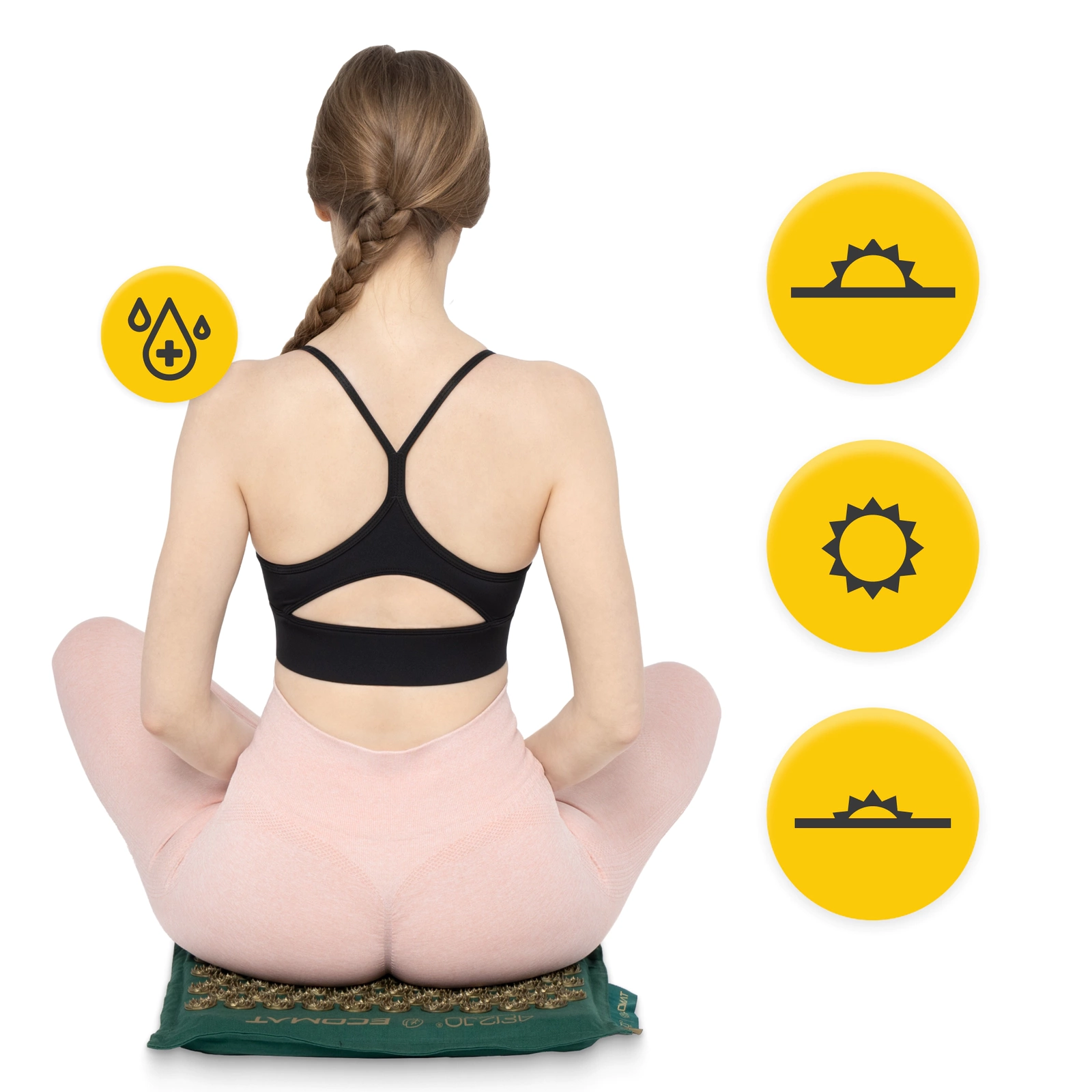 Akupresurní podložka s polštářem ECO 4FIZJO je vysoce kvalitní produkt. Při jeho výrobě byly použity přírodní, ekologicky šetrné materiály. Potah je vyroben ze 100% lnu – jemného a na dotek měkkého přírodního materiálu, který zajišťuje prodyšnost a správnou cirkulaci vzduchu. Pohodlí a komfort při ležení nebo sezení poskytuje výplň z pohankových slupek a kokosových vláken, které se nacházejí v podložce i v polštáři.