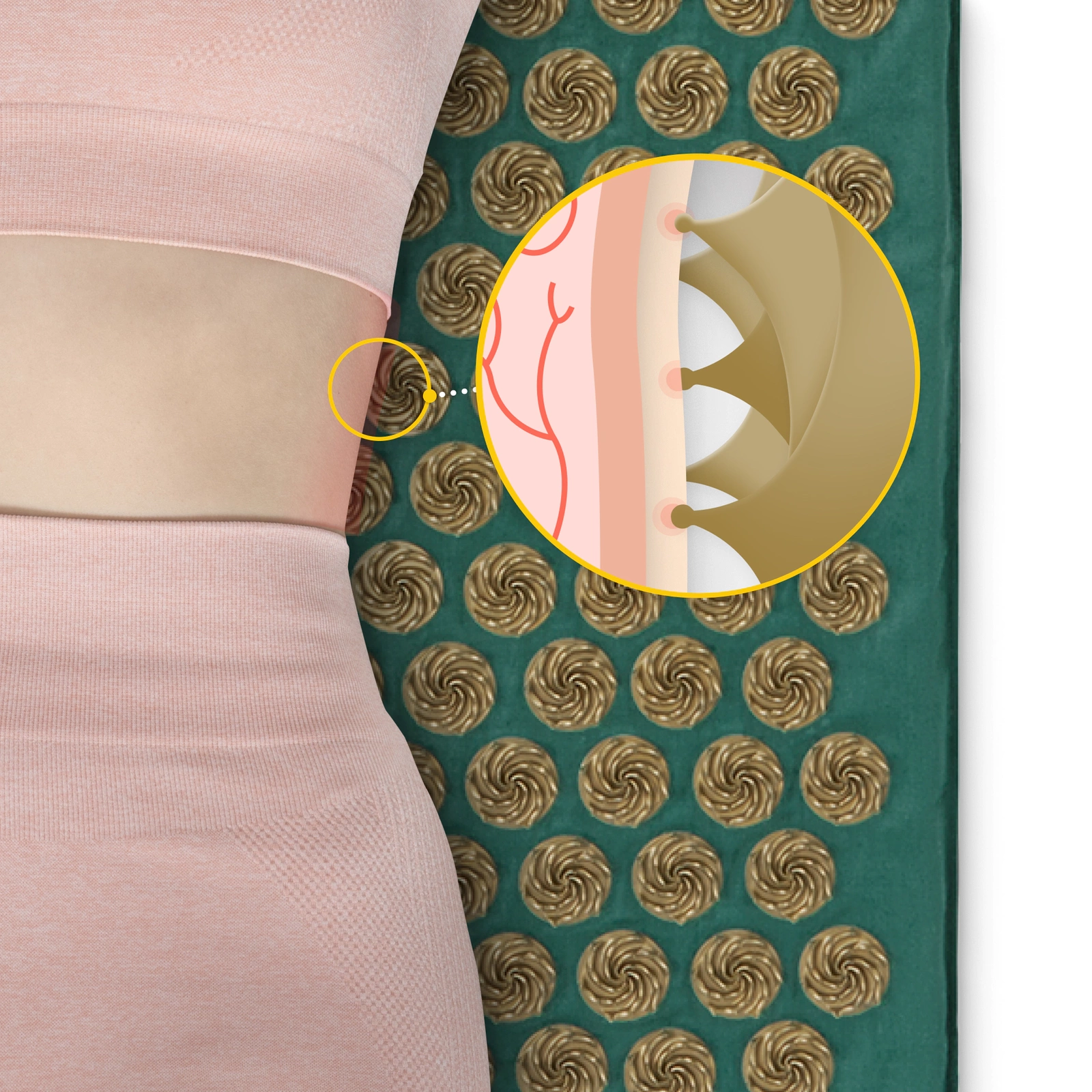 SPINNING SPIKES je technologie, kterou byly vytvořeny hroty akupresurní podložky. U modelu ECO byly připevněny bez použití lepidla metodou HEAT PRESS. Svým tvarem připomínají vír, což zajišťuje ještě účinnější uvolnění fascií a prokrvení celého těla. Hroty jsou vyrobeny z netoxického, hypoalergenního plastu ABS, jenž nedráždí pokožku. Jsou ostré, ale tupě zakončené, aby byly při používání bezpečné pro kůži.