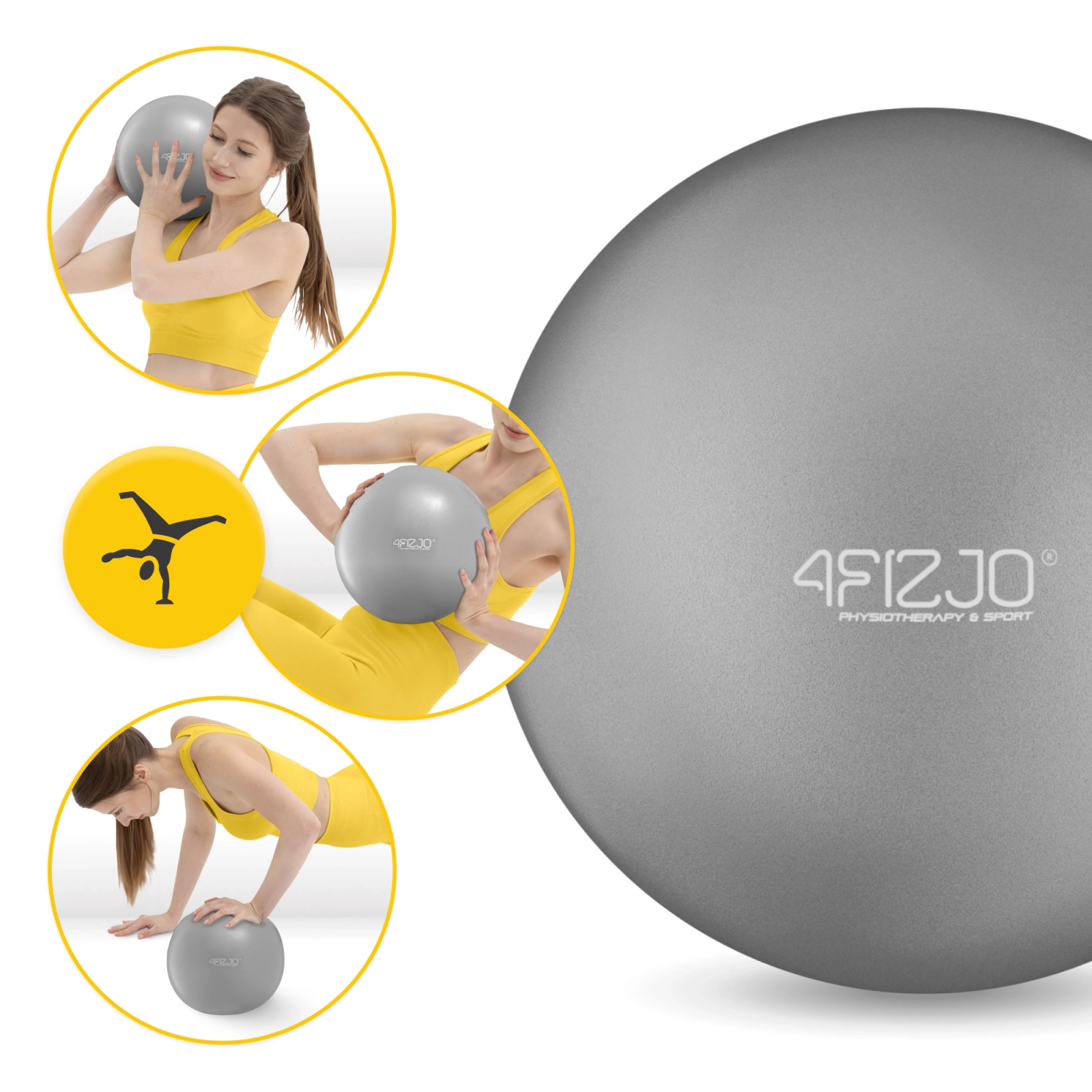 Malý rehabilitační míč na pilates 4FIZJO 22 cm šedý