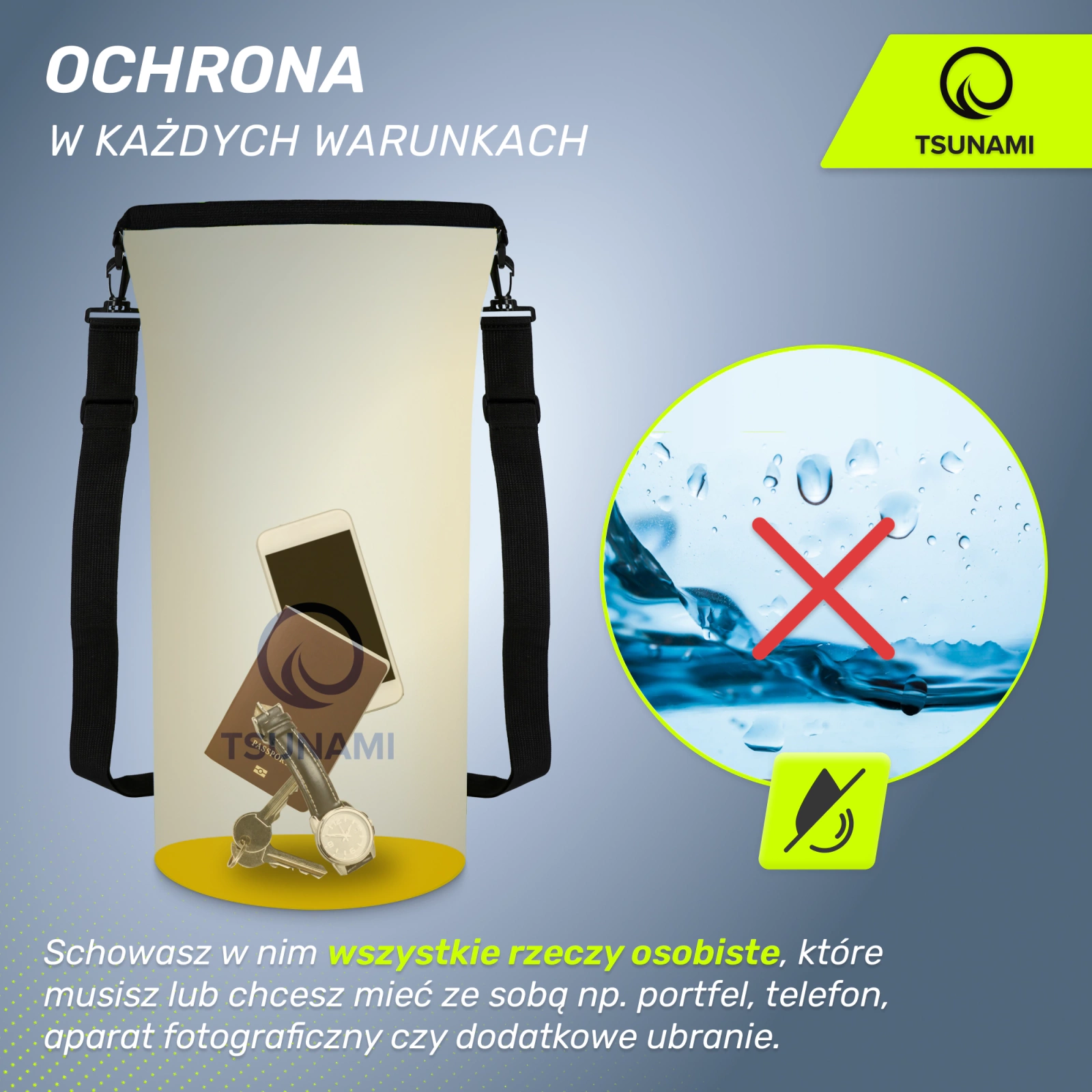 Vyrazte na kajak, loďku, paddleboard, rafting nebo plachtění bez obav o váš mobil, doklady nebo oblečení. S vodotěsným sportovním pytlíkem TSUNAMI se nemusíte bát vln ani deště! Už nikdy vám náhodné namočení věcí nezkazí dovolenou!
