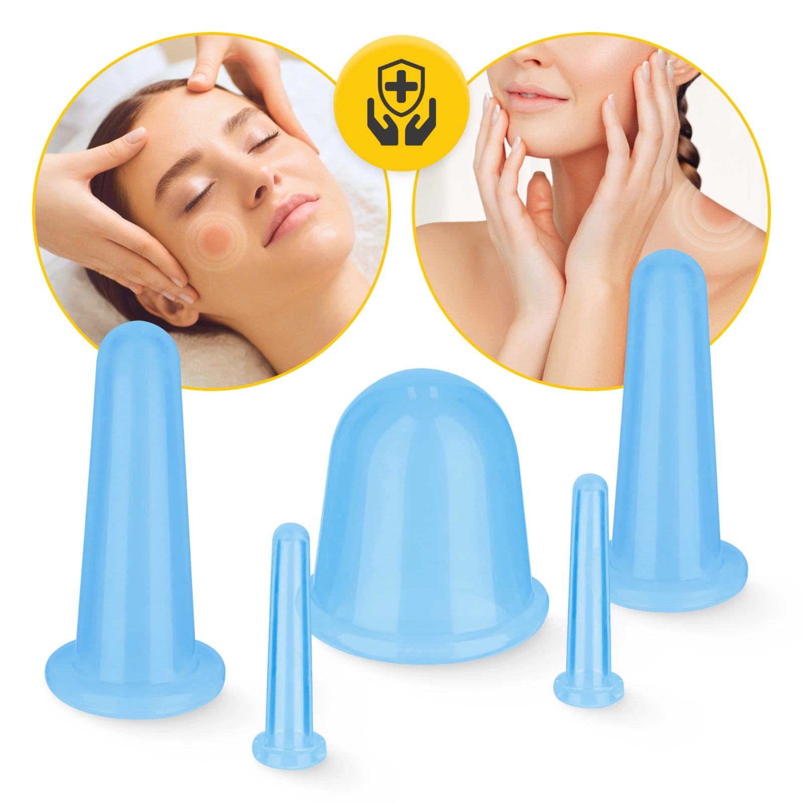 Silikonové masážní baňky FACE+ 5 ks. modré
