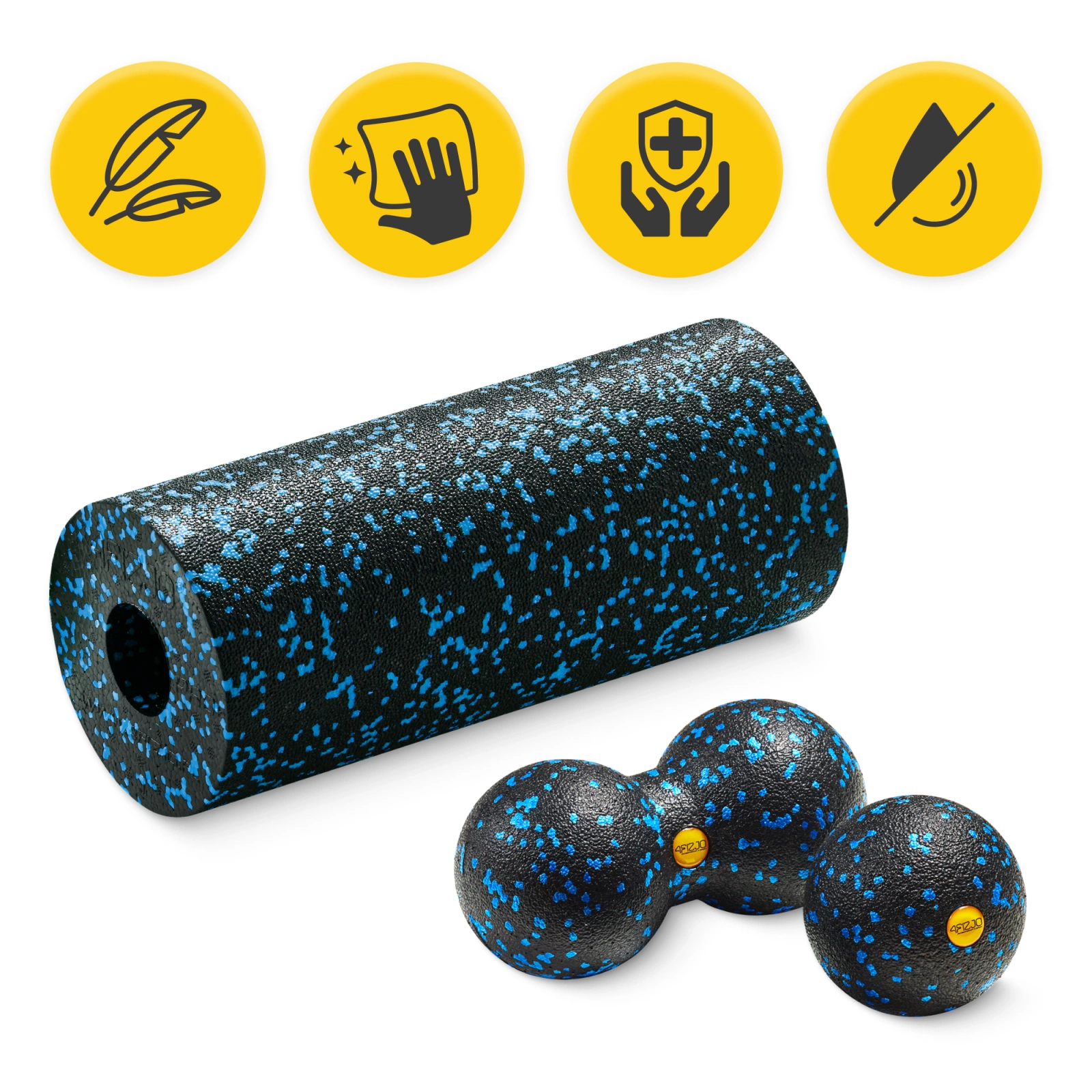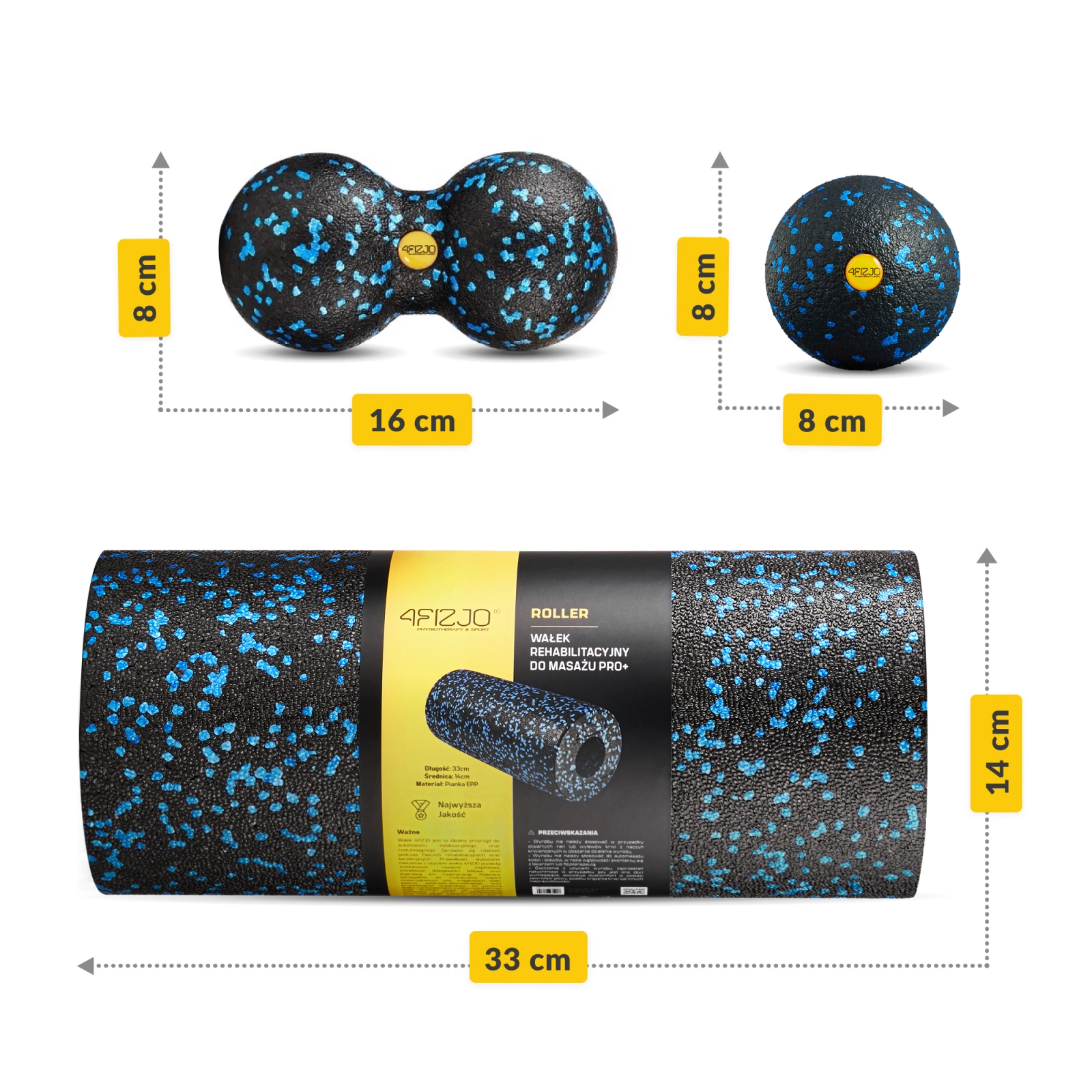 ✔️ Součástí balení: váleček 33 cm, masážní míček 8 cm, dvojitý míček 8 cm