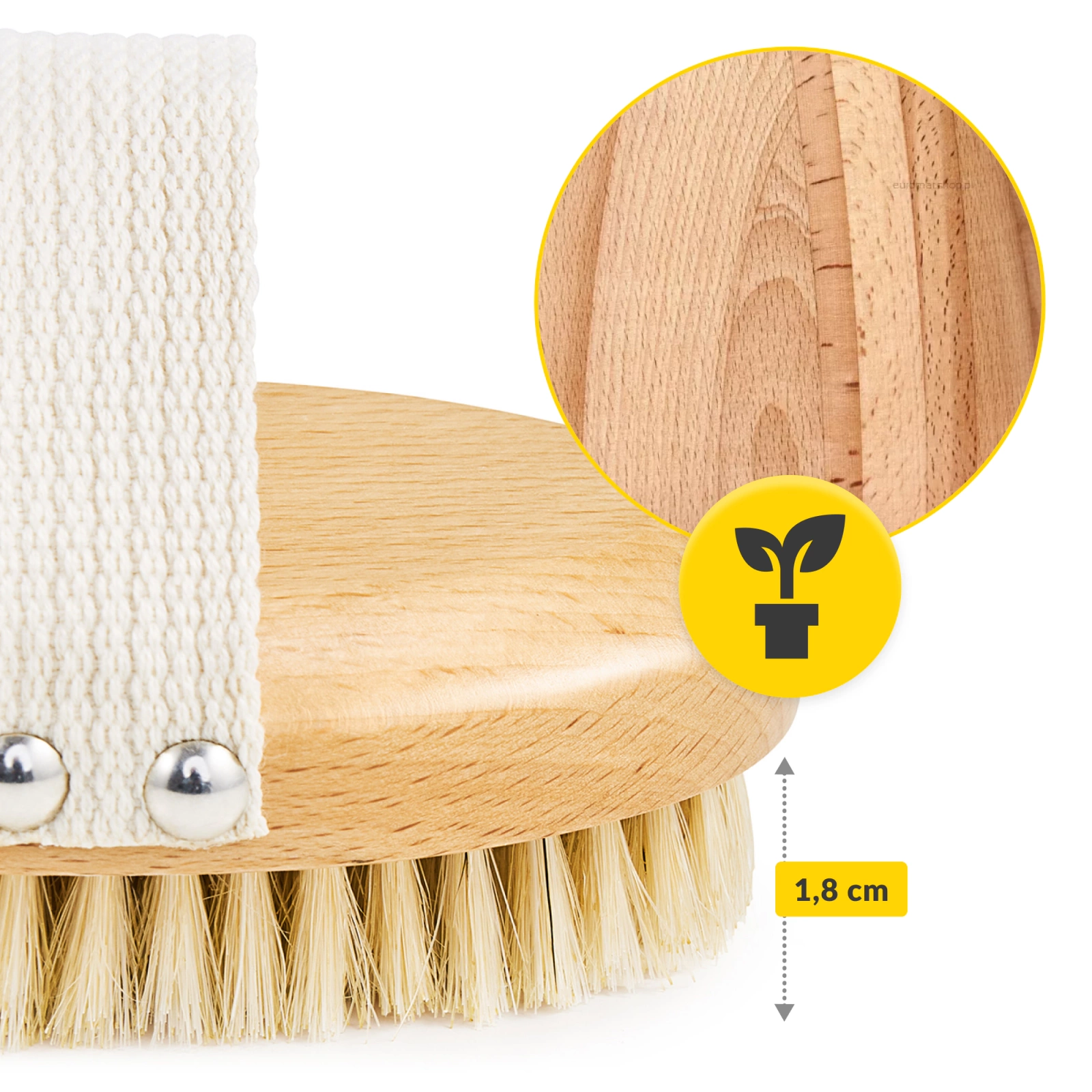 Oválný tvar kartáče v kombinaci s pevným bavlněným proužkem zajišťuje pohodlné držení a snadné kartáčování celého těla.