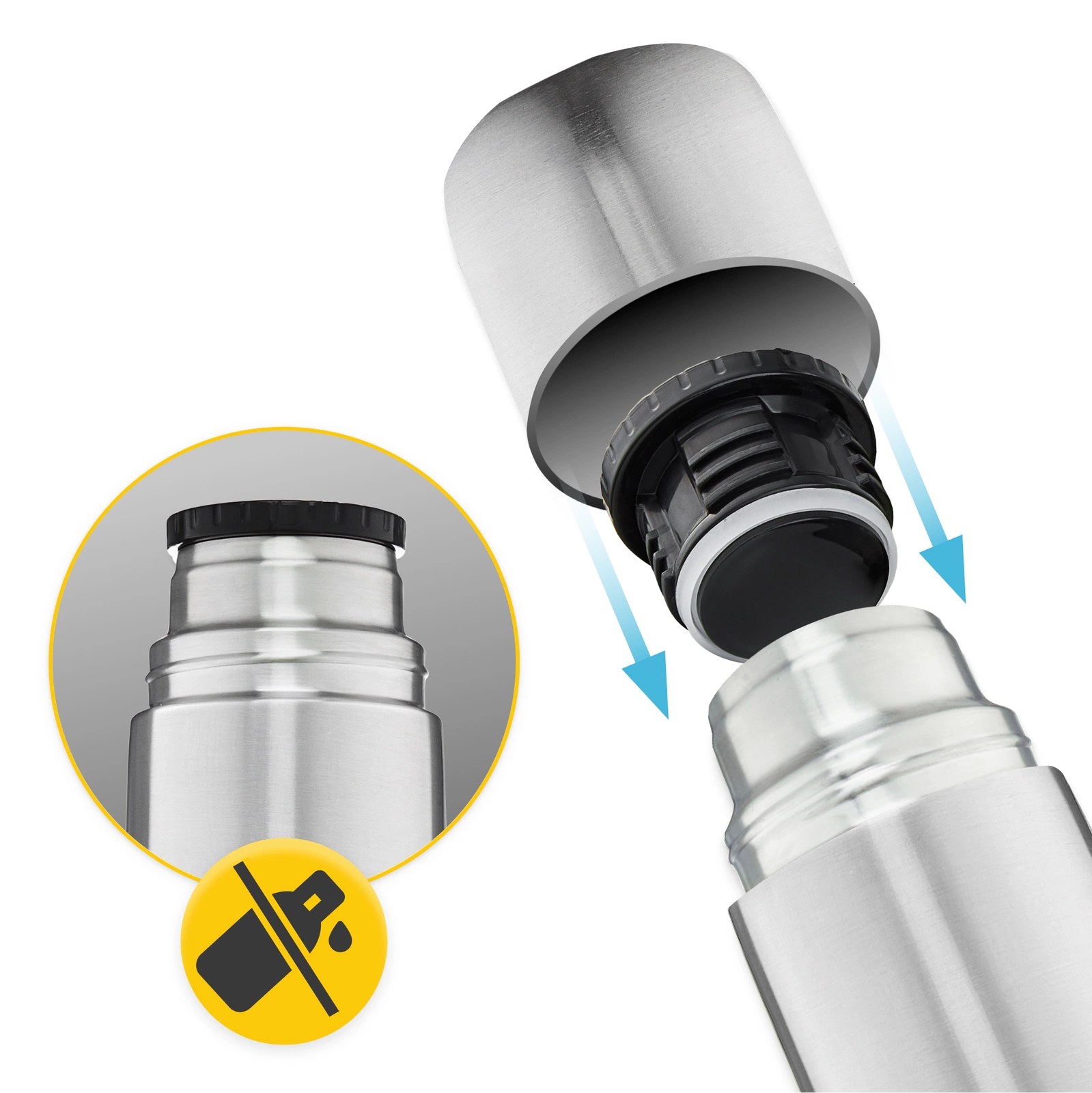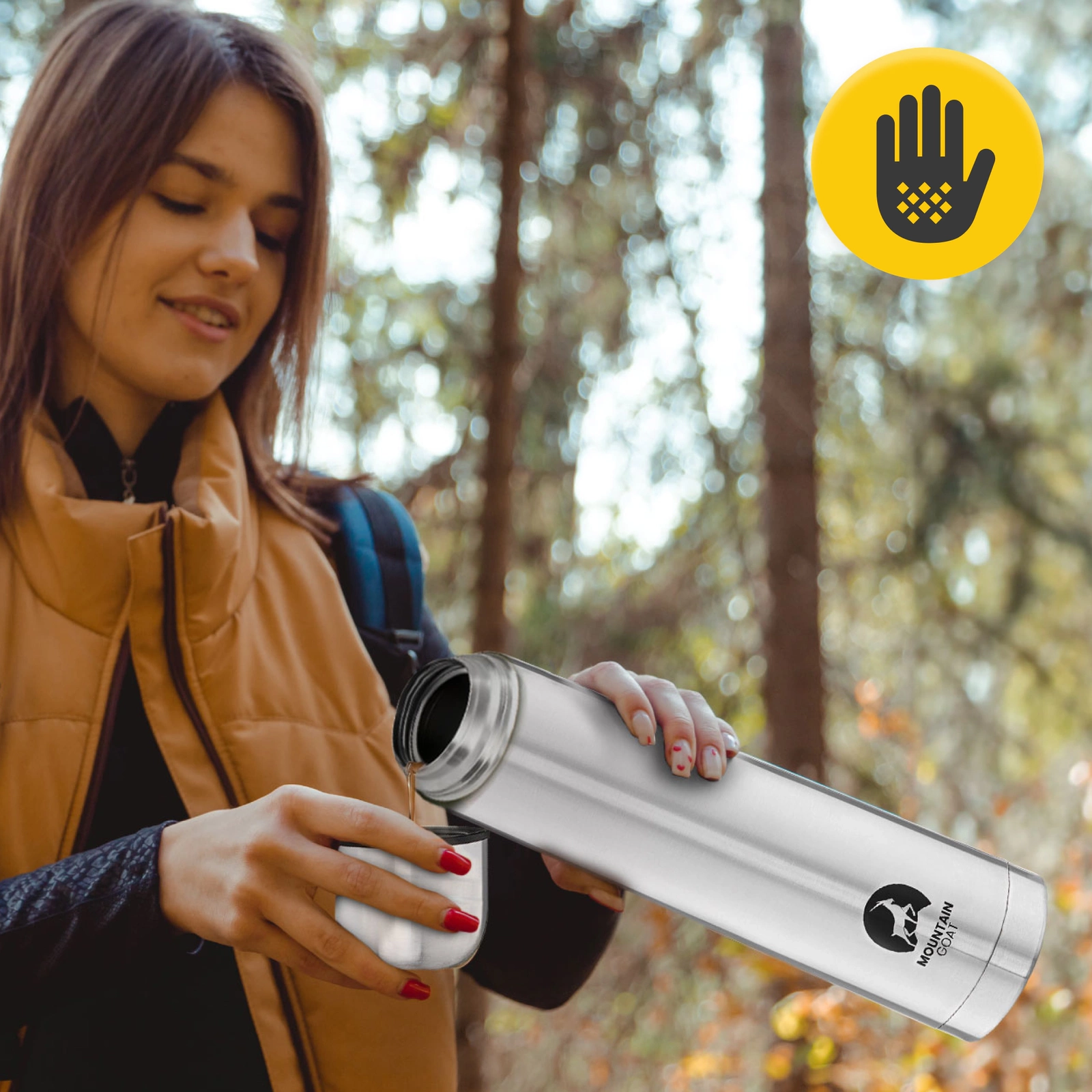 Znáte ten nepříjemný pocit, když zjistíte, že se vám v batohu vylila voda nebo čaj? S naší vakuovou cestovní termoskou MOUNTAIN GOAT se tomu můžete vyhnout. Má dvojitou ochranu proti rozlití a vytečení, kterou zajišťuje šroubovací uzávěr a víčko, jež lze použít jako hrnek. Díky této dvojité ochraně se nápoj nevylije, ani když je v termosce vysoký tlak.