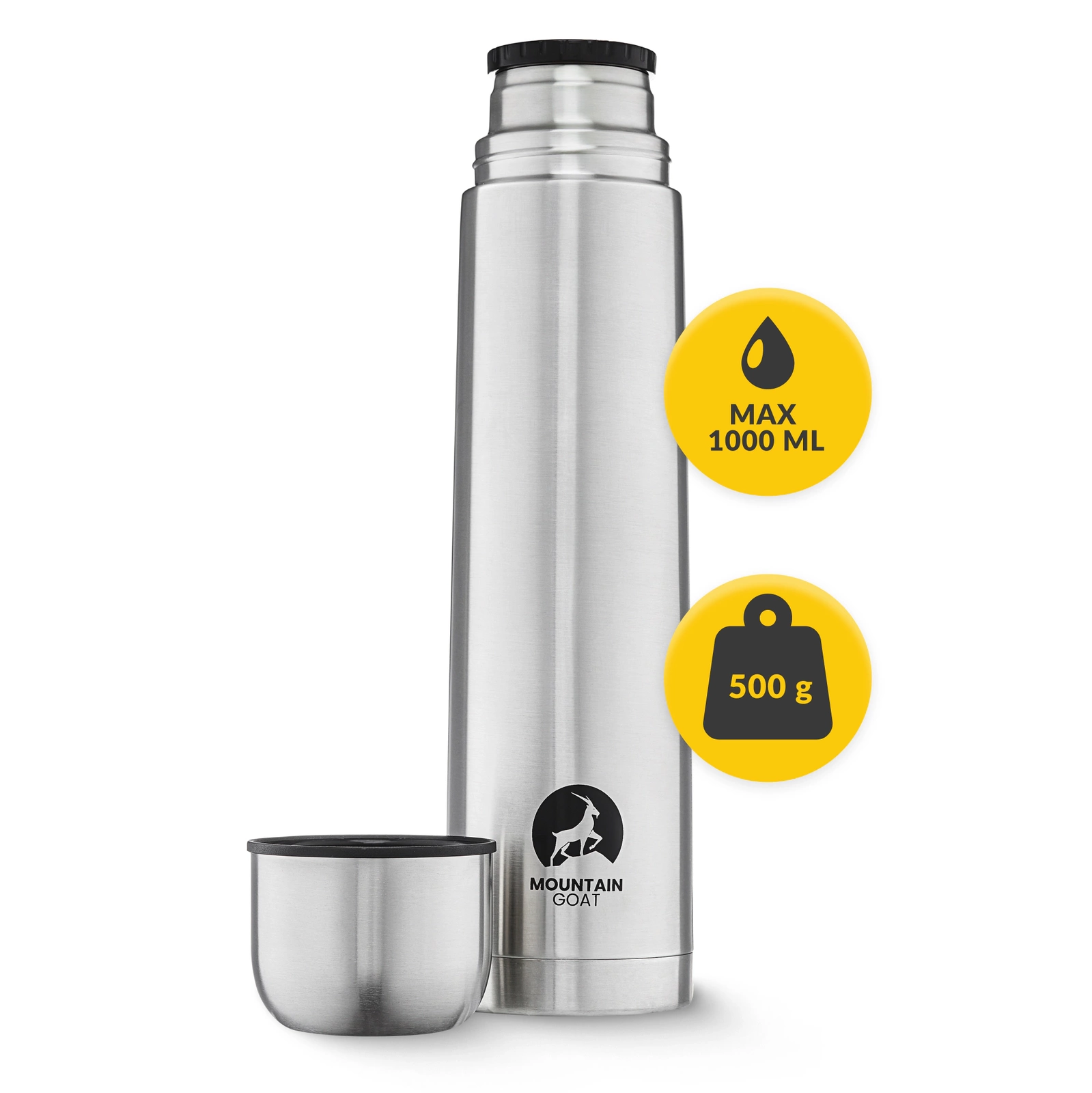 Každý ví, jak důležitá je správná hydratace. Ovlivňuje nejen zdraví, ale i celkovou pohodu. Víte, kolik vody za den vypijete? Dva litry? Méně nebo více? S termoskou MOUNTAIN GOAT z nerezové oceli o objemu 1 litr snadno zjistíte, kolik tekutin denně přijímáte. Naplňte ji dvakrát denně a máte jistotu, že jste vypili dostatečné množství.
