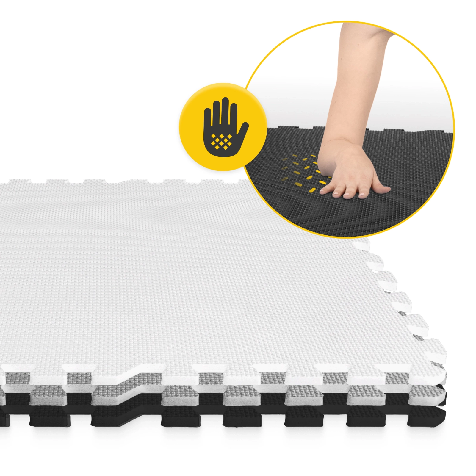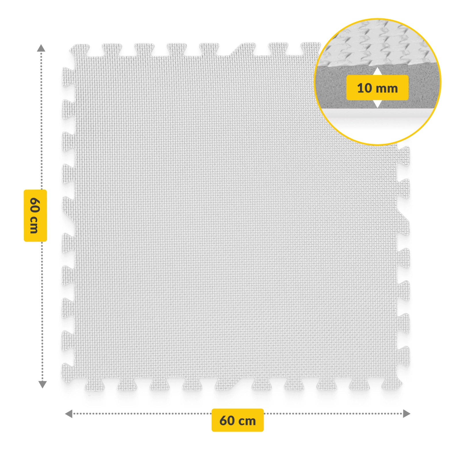 Velká pěnová hrací podložka nabízí nekonečné možnosti pro zábavu. V jednom okamžiku se může stát ideálním místem pro hraní pod širým nebem, pak se ale promění v pohodlnou podložku. Díky modulárním dílkům ve tvaru puzzle je můžete kombinovat podle libosti, a to vytvářet nové konfigurace. A pokud se hračky vašeho dítěte povalují po celém bytě, využijte pěnové puzzle pro děti k vytvoření praktické boxu na hračky. Tento kreativní způsob úklidu je skvělý nápad, jak jednoduše a zábavně naučit dítě udržet pořádek.