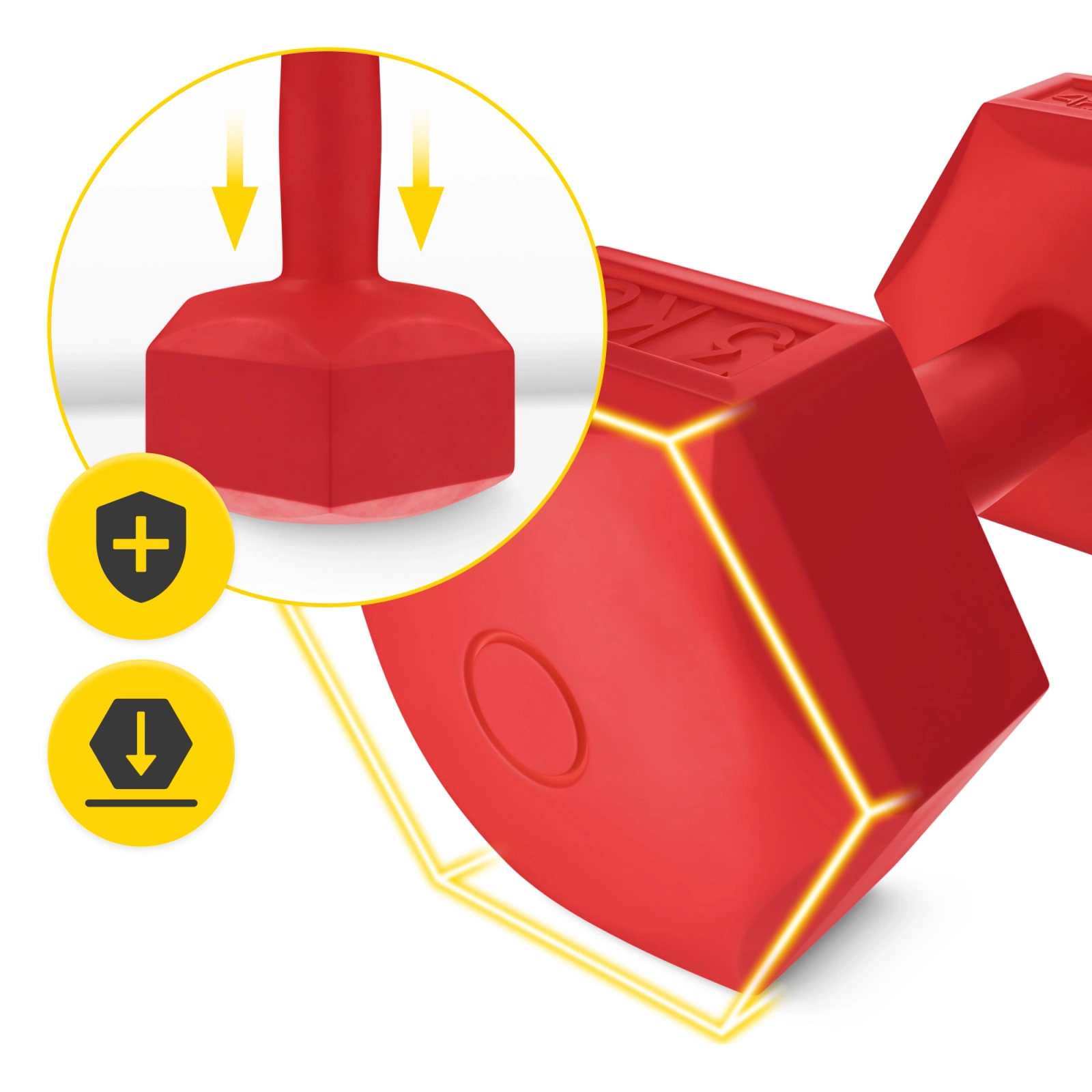 ▶️ Speciální povlak činek chrání podlahu před poškrábáním a jejich šestihranný tvar zabraňuje kutálení po podlaze, což zvyšuje bezpečnost při tréninku.