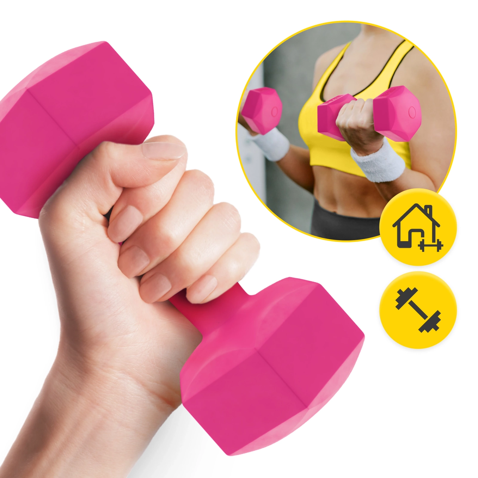 ▶️ Činky mají protiskluzový povrch a ergonomický tvar, díky čemuž se pohodlně drží.