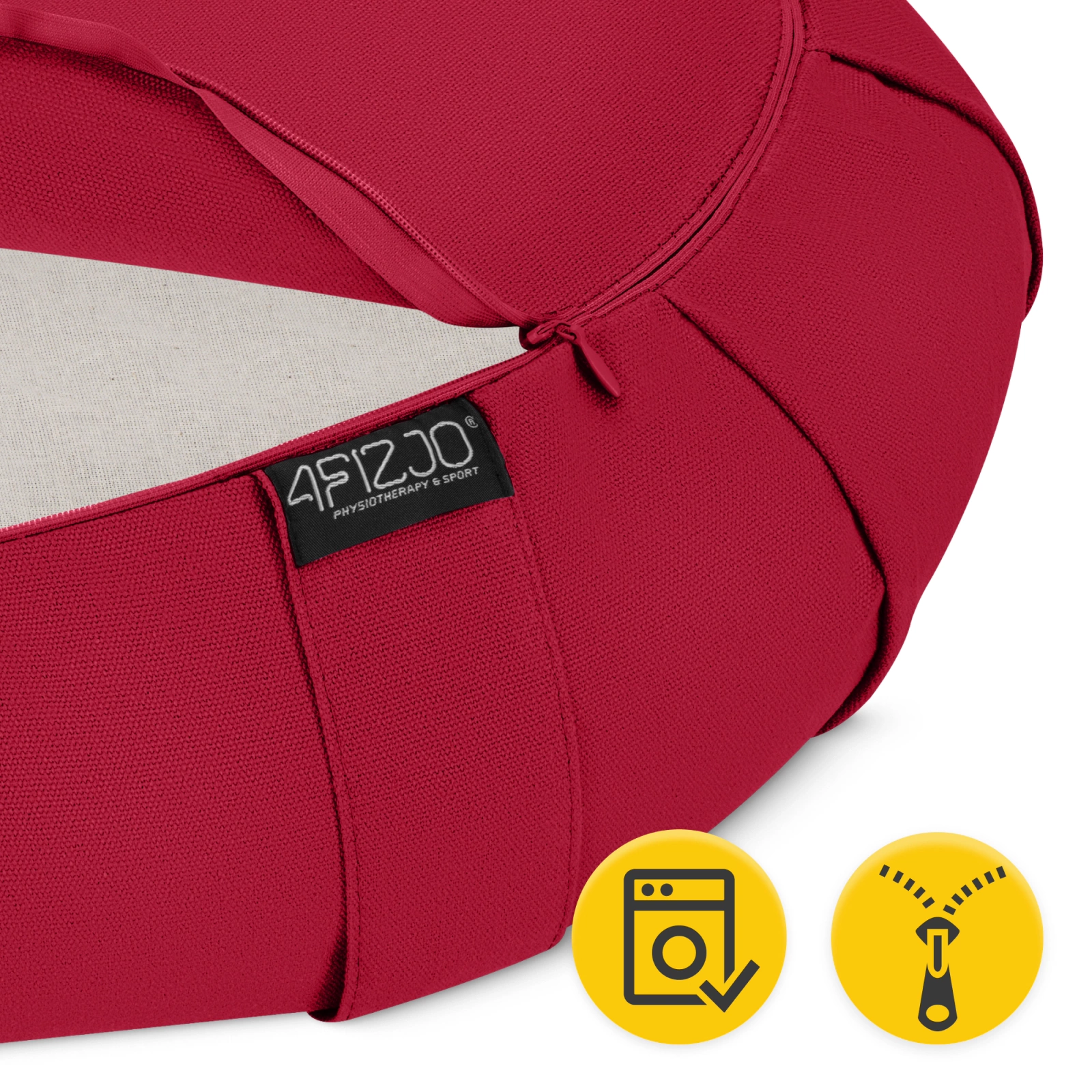 Meditační polštář Zafu ve tvaru půlměsíce červený