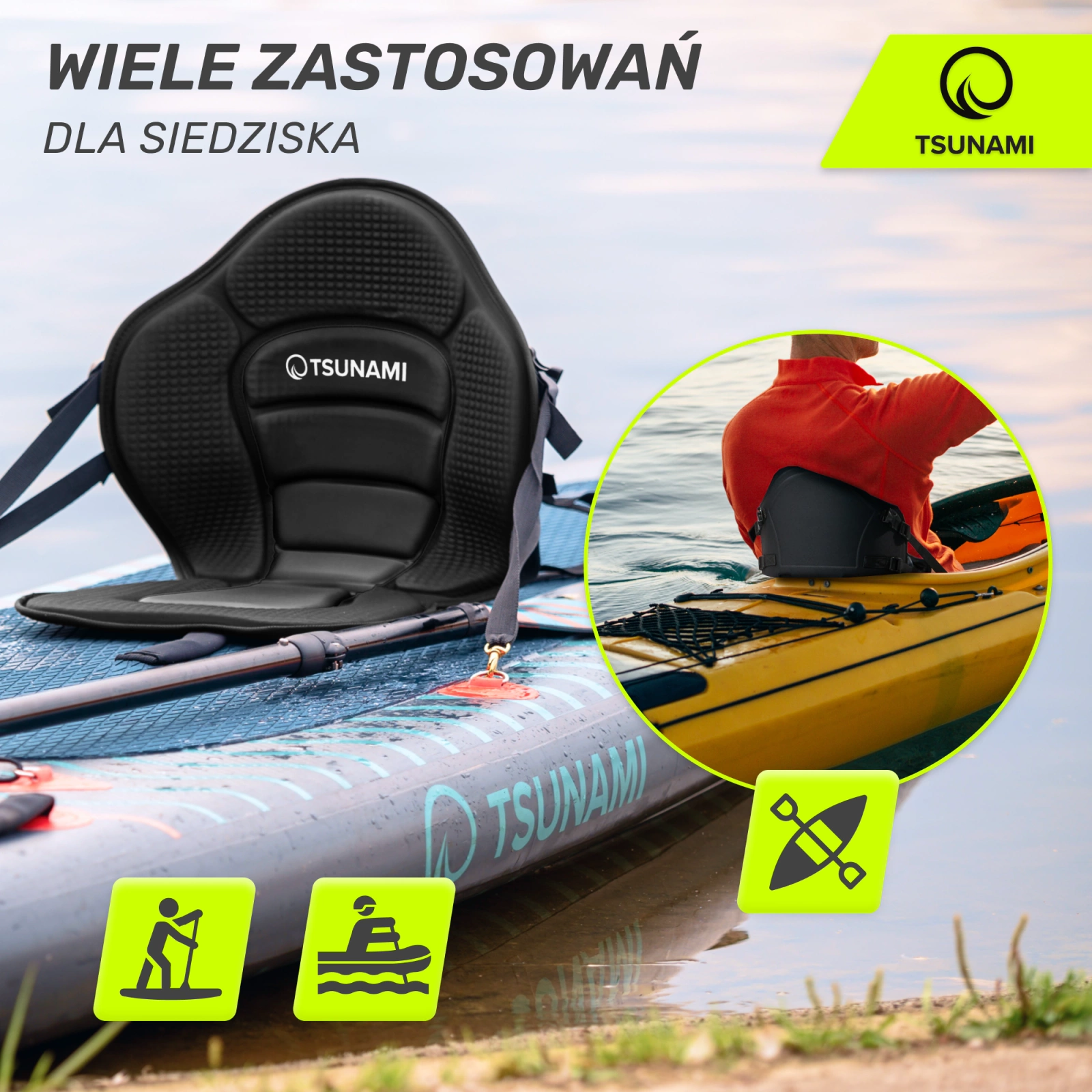 Pádlování vestoje může být náročné, a právě proto je SUP, který snadno proměníte v kajak, ideálním řešením. Sedačka s opěradlem TSUNAMI je perfektní pro milovníky vodních dobrodružství, kteří si chtějí užít vodu s větším pohodlím. Ideální pro chvíle, kdy si chcete odpočinout nebo si být jisti pohodlím na delších výletech.