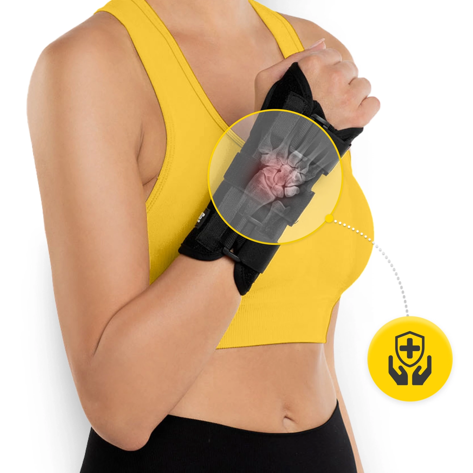 Tři dlahy a anatomicky tvarovaná výztuha jsou navrženy tak, aby účinně znehybnily zápěstí ve funkční poloze a zajistily jeho stabilizaci. Pokud váš stav nevyžaduje silné zpevnění, můžete vyjmout dlahu z prostřední části záprstí. Díky tomu si přizpůsobíte míru zpevnění podle svých potřeb. Tato multifunkčnost ortézy zajišťuje maximální pohodlí při používání.