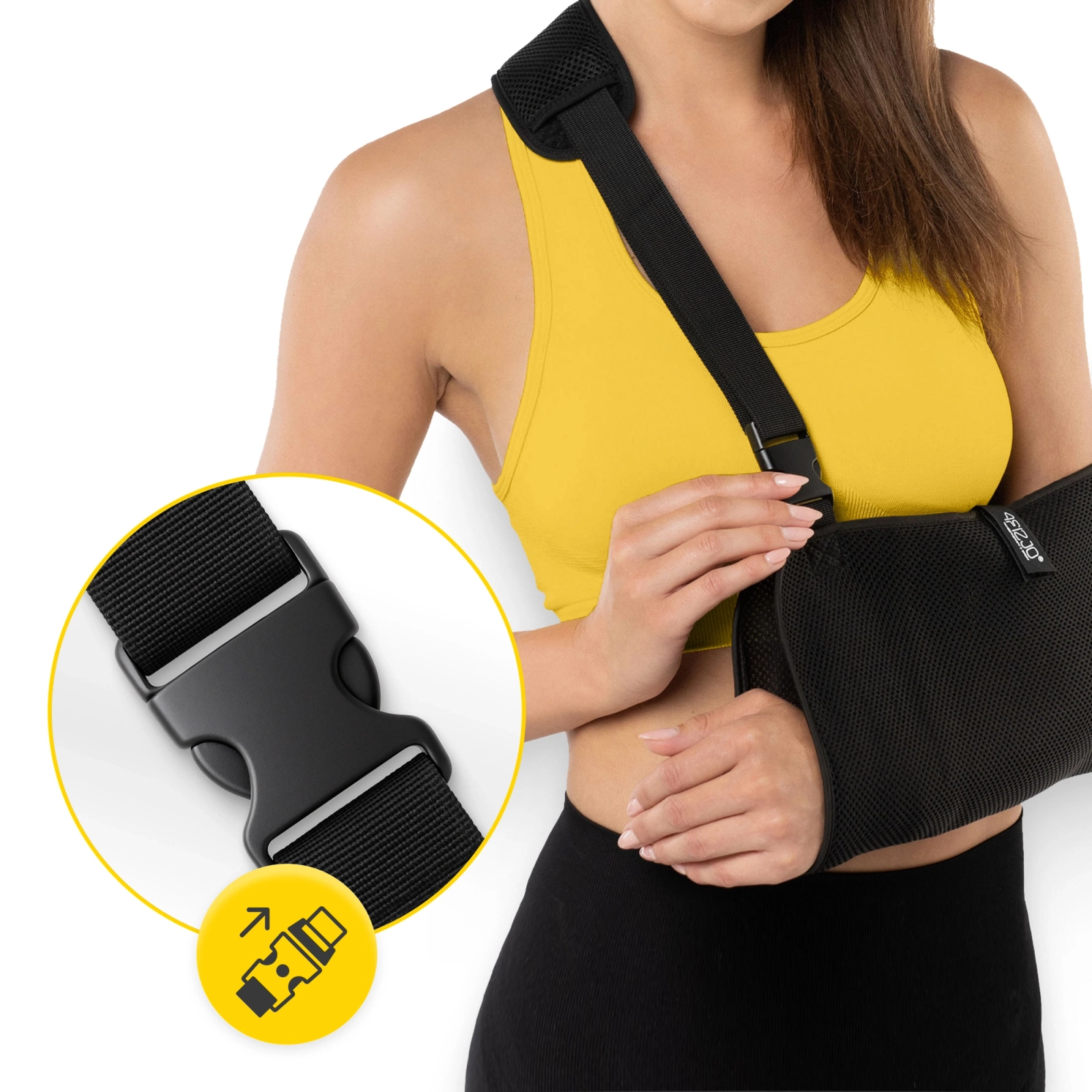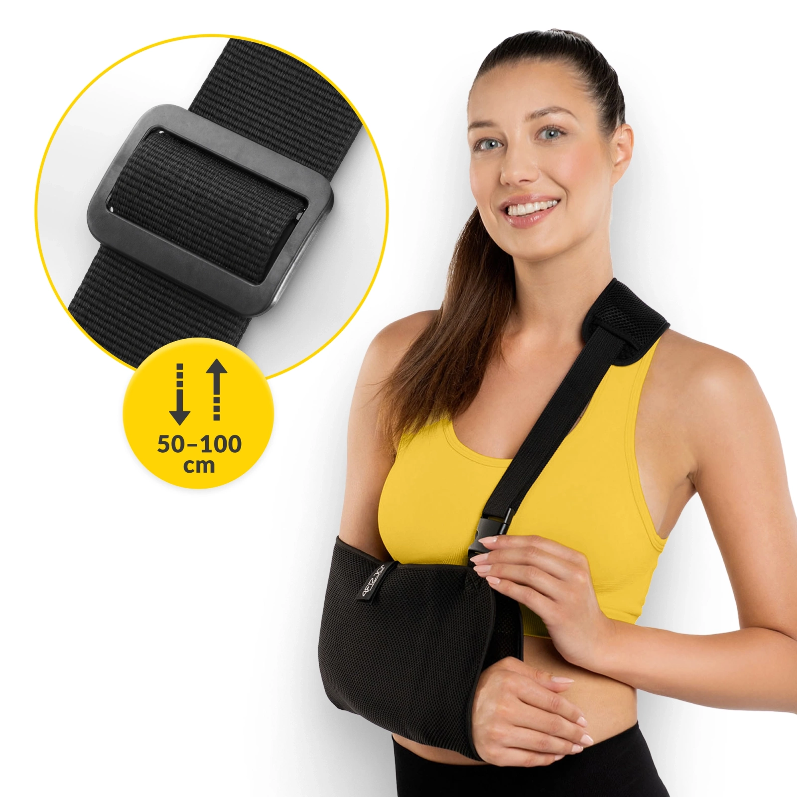 3️⃣ Nastavte délku popruhu tak, aby byl loket ohnutý v úhlu 90° nebo v úhlu doporučeném lékařem.