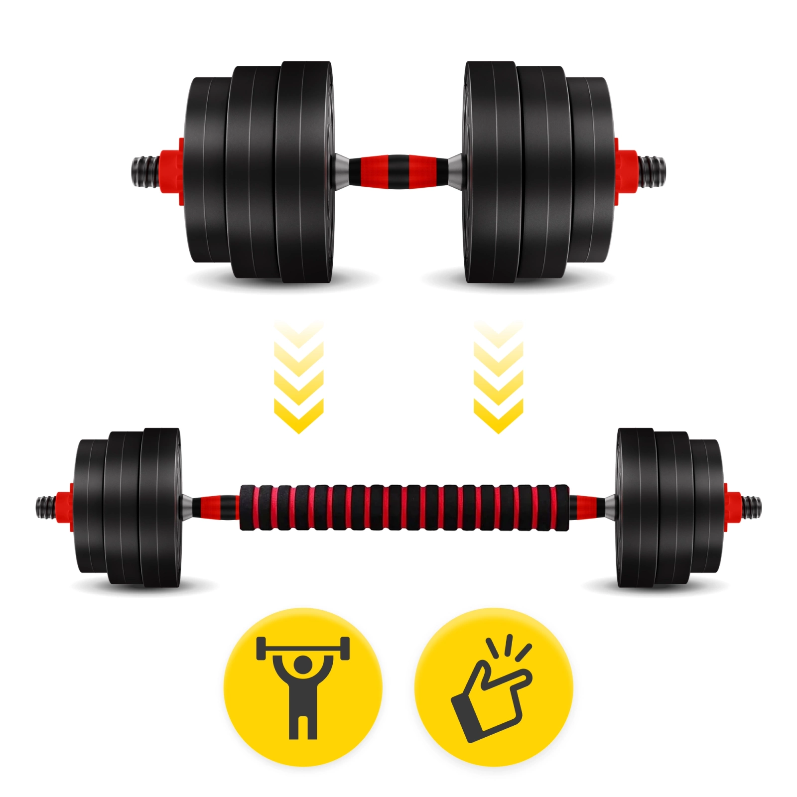 ▶️ Možnost přeměny činek na osu vám umožňuje provádět i pokročilé cviky, jako jsou mrtvé tahy nebo hip thrusty.