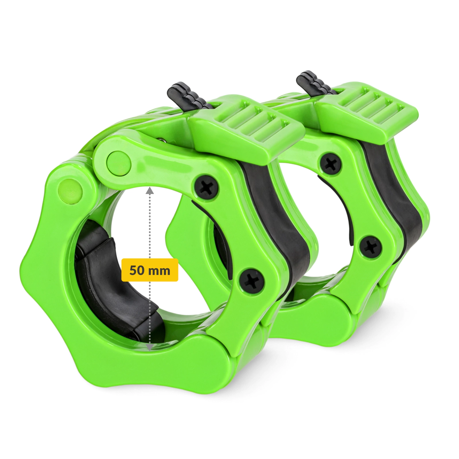 Uzávěry na olympijské tyče o průměru 50 mm byly navrženy s ohledem na pevné a bezpečné uchycení kotoučů. Vynikají svou odolností a spolehlivostí díky použití pevného polymeru, který odolá i těm nejintenzivnějším tréninkům. Gumová těsnění umožňují přesné a pevné natažení uzávěru na tyč a zároveň účinně zabrání samovolnému posunu závaží. Redukuje také hluk vznikající narážením kotoučů během cvičení. Uzávěry na činku jsou nezbytnou součástí výbavy, jak pro pokročilé sportovce, tak i rekreačně cvičící.